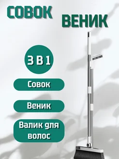 Веник с совком и валиком для волос 3 в 1