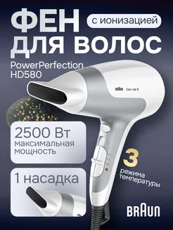 Фен для волос мощный, Satin Hair 5 PowerPerfection BRHD580E