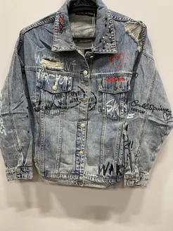 Джинсовая куртка с принтом и надписями