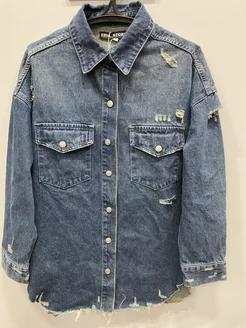 Джинсовая куртка-рубашка с принтом и надписями