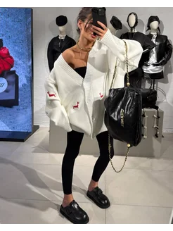 Кардиган удлиненный с V-образным вырезом и вышивкой собачки