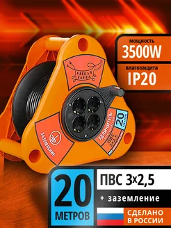 Удлинитель на катушке 20м ПВС 3*2,5 силовой с заземлением