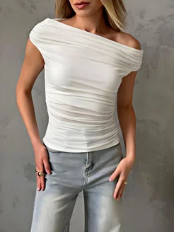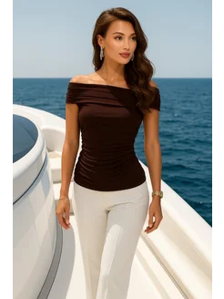 Коричневый топ вечерний с открытыми плечами под пиджак