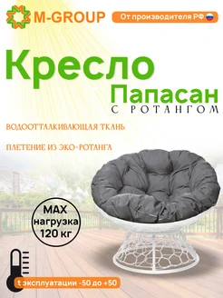 Кресло ПАПАСАН с ротангом белое, серая