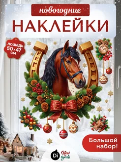 Новогодние наклейки на окно символ года огненная лошадь 2026