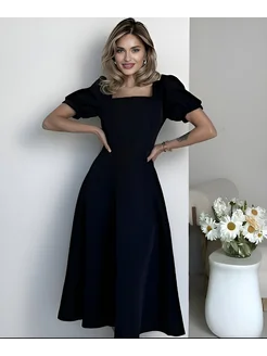 Платье миди праздничное с коротким рукавом