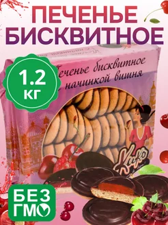 Печенье бисквитное вишня темная глазурь 1,2кг