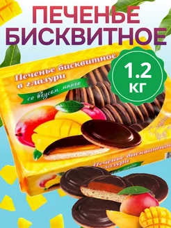 Печенье бисквитное клубника темная глазурь 1,2кг