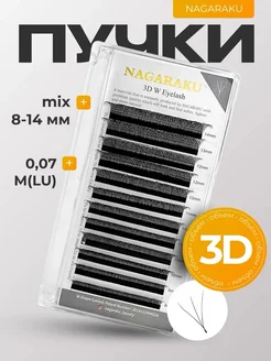 Ресницы для наращивания готовые пучки 3д 0.07 LU микс