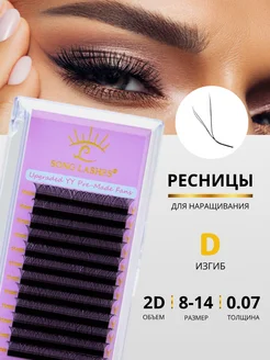 Готовые пучки 2D 0,07 изгиб D 8-14 для наращивания ресниц