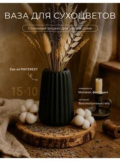 Ваза для сухоцветов белая из гипса декор для дома