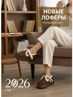 Тапочки-лоферы короткие закрытые теплые с мехом