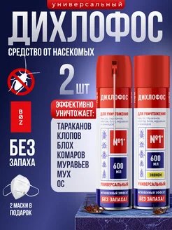 Дихлофос от тараканов средство от насекомых без запаха 2шт