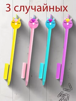 Ручки шариковые с топпером (пончик-единорог), 3 штуки, синие
