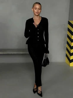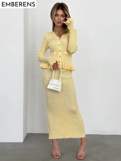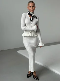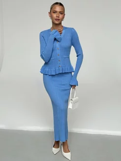 Костюм женский трикотажный кардиган и юбка с кружевом