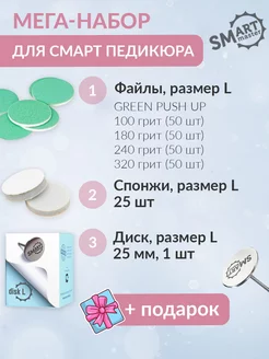 Мега набор смарт диск для педикюра Green Push Up L 25 мм