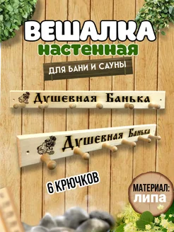 Вешалка"Душевная банька"деревянная в баню(надпись)
