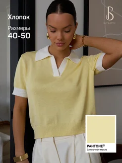 Джемпер поло вязаный с коротким рукавом