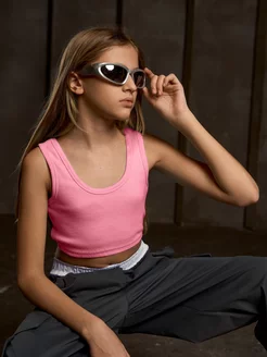 Кроп топ летний в рубчик укороченный