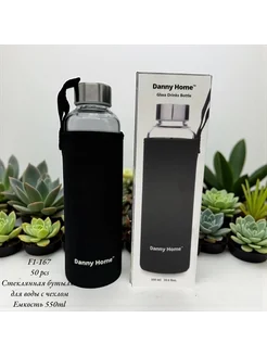 Бутылка для воды спортивная стекло с чехлом 550 мл в школу