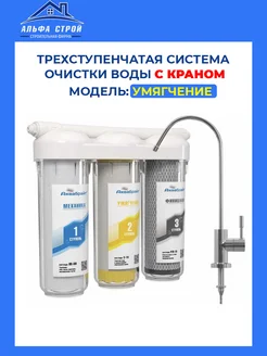 Трёхступенчатый фильтр для очистки воды с краном. Умягчение