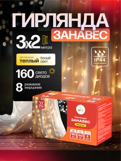 Гирлянда Занавес теплый свет 3х2м 16 нитей