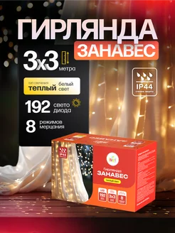 Гирлянда Занавес теплый свет 3х3м 16 нитей