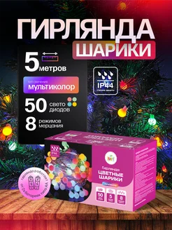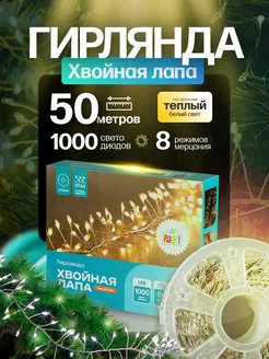 Гирлянда мишура хвойная лапа роса светодиодная 50м
