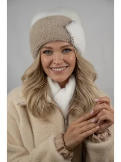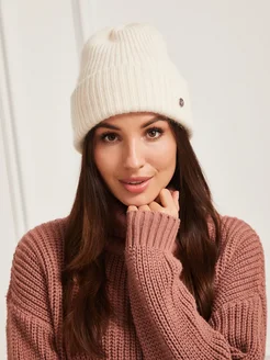 Шапка бини вязаная с отворотом зимняя енот