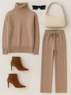 Трикотажный брючный костюм теплый вязаный осень зима