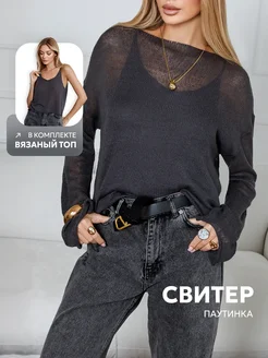 Свитер оверсайз вязаный паутинка тонкий