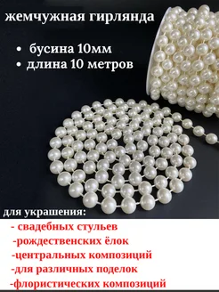 Бусы на елку белые новогоднее украшение жемчуг 10 метров