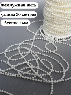 Бусы на елку белые новогоднее украшение жемчуг 50 метров