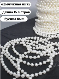 Бусы на елку белые новогоднее украшение жемчуг 15 метров