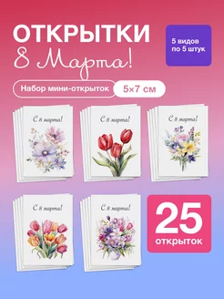 Набор мини открыток на 8 марта, подарок, 25 шт