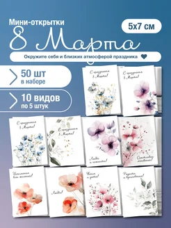 Набор мини открыток на 8 марта, подарок, 50 шт