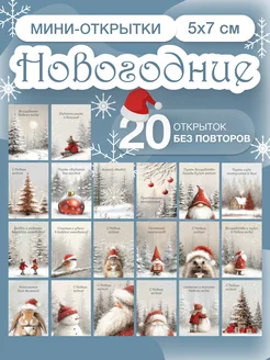 Набор мини открыток на новый год, новогодние открытки 20 шт