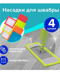 Насадка моп 4 шт, универсальная, микрофибра, карманы