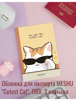 Обложка для паспорта "Cutest Cat", ПВХ, 2 кармана