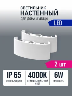 Светильник настенный светодиодный белый 6 Вт 4000К (2шт)