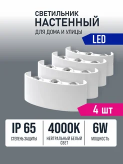 Светильник настенный светодиодный белый 6 Вт 4000К (4шт)