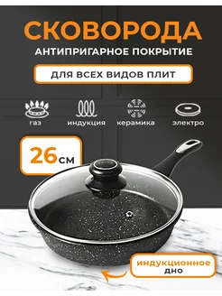 Сковородка с антипригарным покрытием с крышкой, 26 см