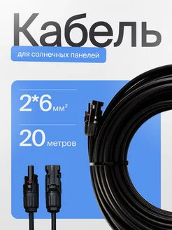 Кабель для солнечных панелей 20 м, 2*6мм2 сдвоенный с MC4