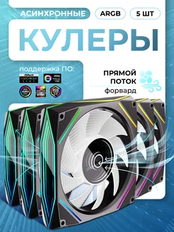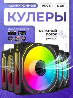 Асинхронный argb вентилятор для ПК черный. Прямой поток 5шт