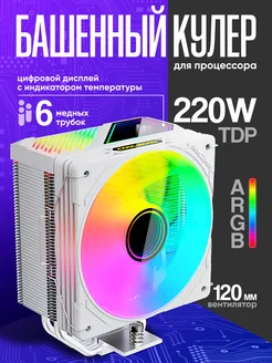 Кулер для процессора с индикатором температуры, ARGB, белый