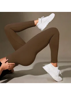 Лосины леггинсы утягивающие спортивные в рубчик коричневые