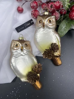 Стеклянная елочная игрушка Сова 14 см 2 шт