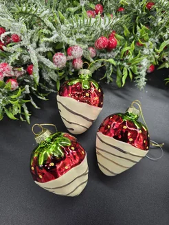 Стеклянная елочная игрушка Клубника в шоколаде 3 шт