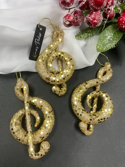 Стеклянная елочная игрушка Скрипичный ключ 13 см 3 шт