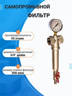 Фильтр грубой очистки самопромывной 3 4 ВР-ВР с манометром
